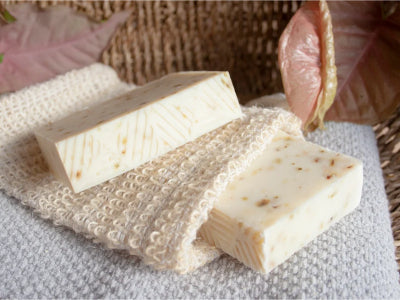 Ingredients: Olive oil, Coconut oil, Palm oil (R.S.P.O. Segregated Source), Shea Butter, Wild poppy fragerance oil, Dried California poppy leaves, Titanium dioxide